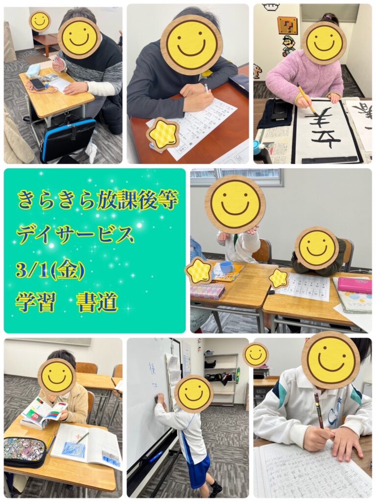 「できたー!」と満面の笑みで書いた字をスタッフに見せる子ども達でした。