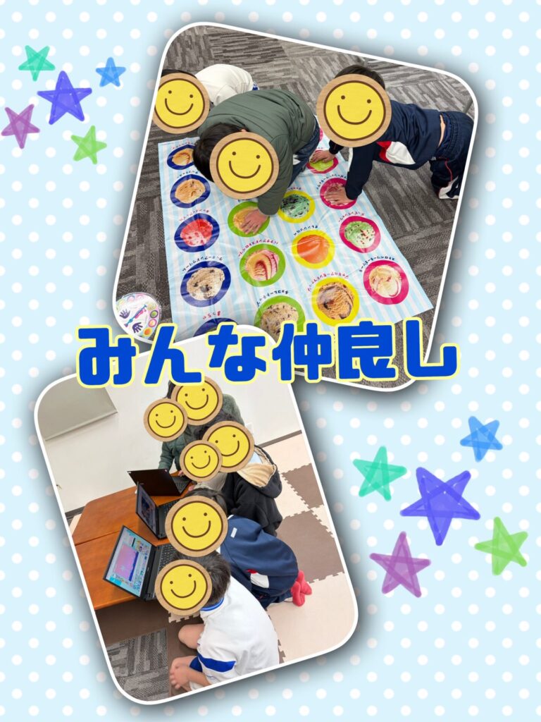 お隣のお友だちと画面を見せ合ったり、攻略法を教え合ったり、自由時間も みんな仲良し です